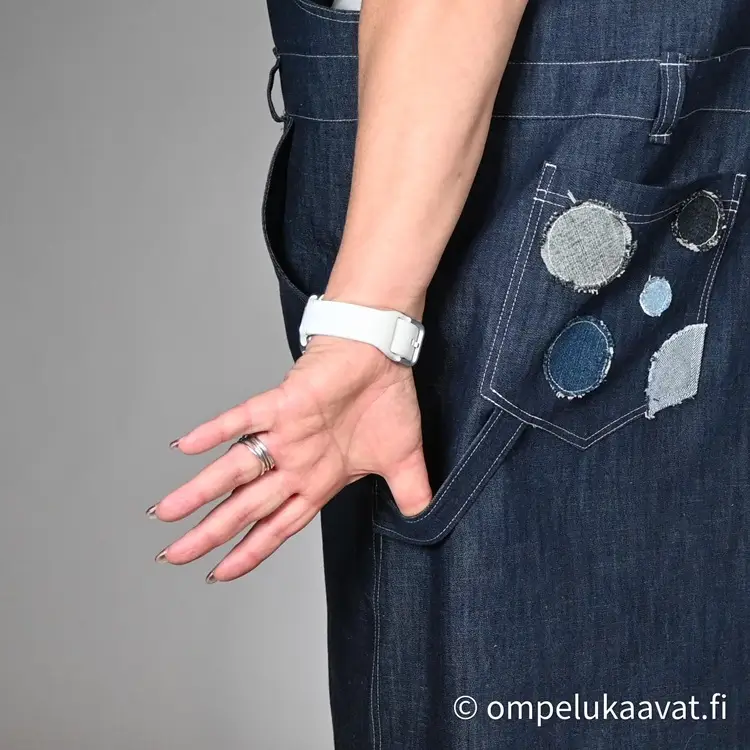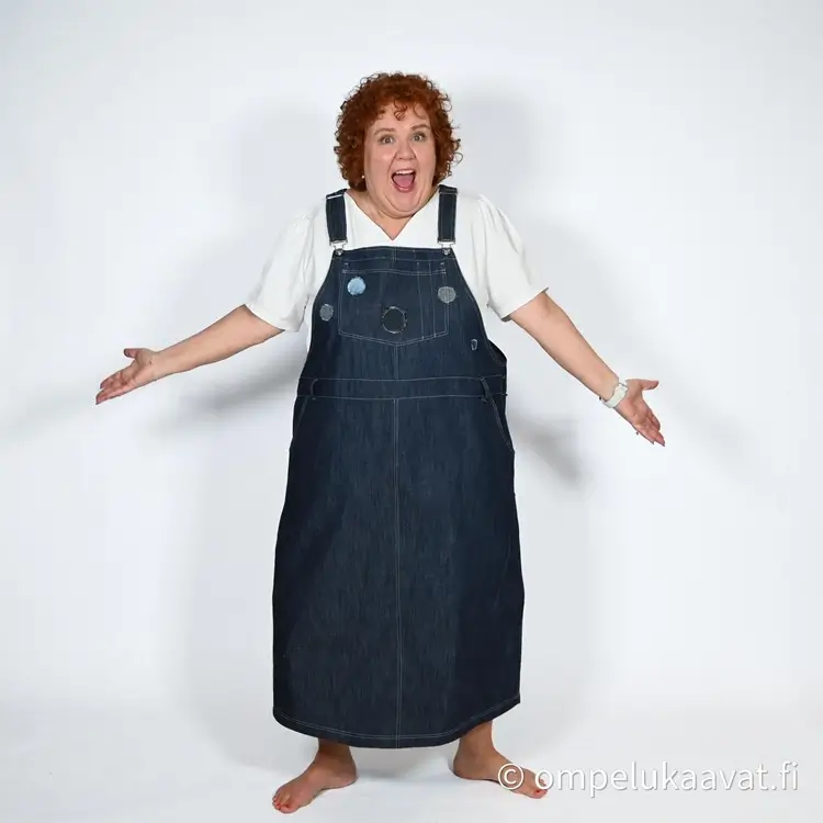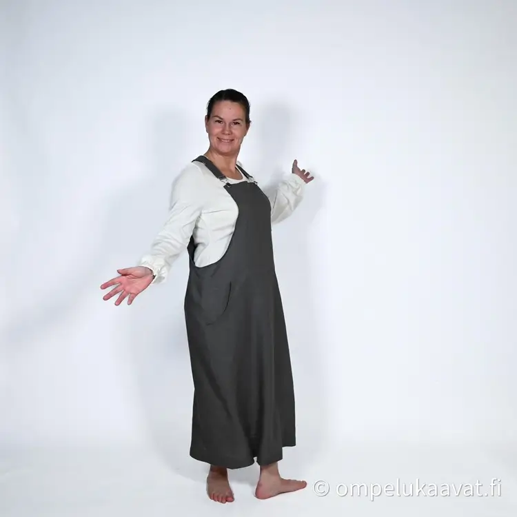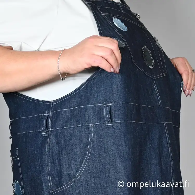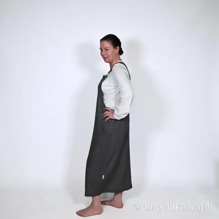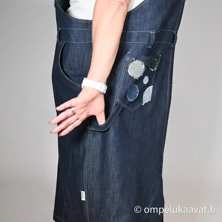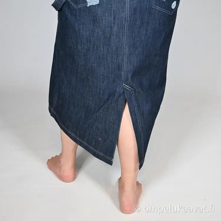 Kankaanmenekki on laskettu normaalin lantion kaavan mukaan, kaikilla yksityiskohdilla ja pitkällä helmalla.