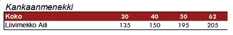 Taulukossa kankaanmenekki on sentteinä