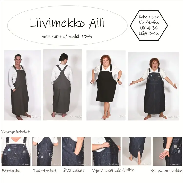Normaalin mittataulukon lisäksi kaavat ovat saatavilla myös kapealle lantiolle ja leveälle lantiolle.