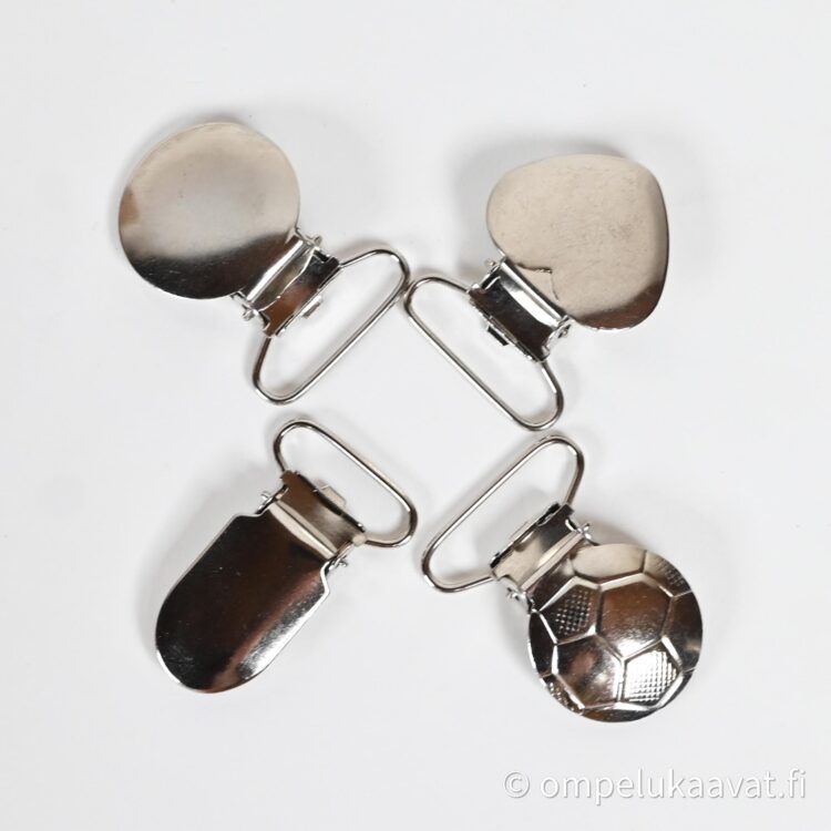 Sopii käytettäväksi henkseleissä, tuttiketjussa, avainnauhoissa, neuleiden klipseinä yms.