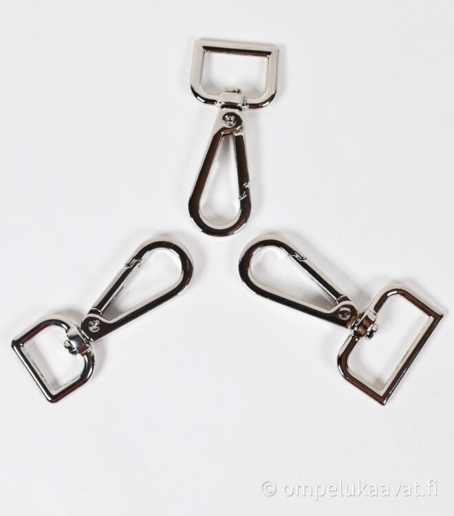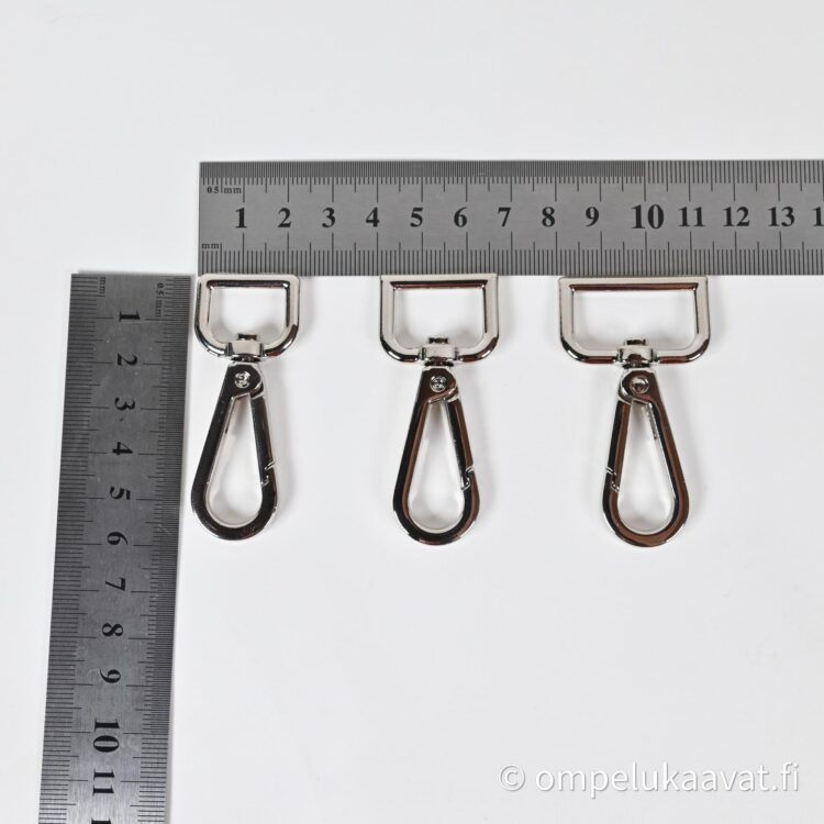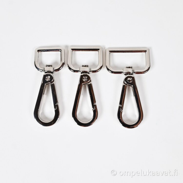 Etusivu / Tuotteet / Tarvikkeet / Soljet / Remmisoljet / Jousihaka laukun hihnalle leikarilla 3 kokoa