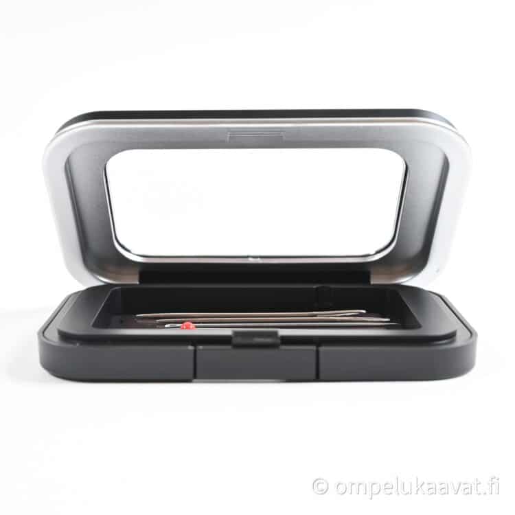 Magneettinen neulojen säilytysrasia.