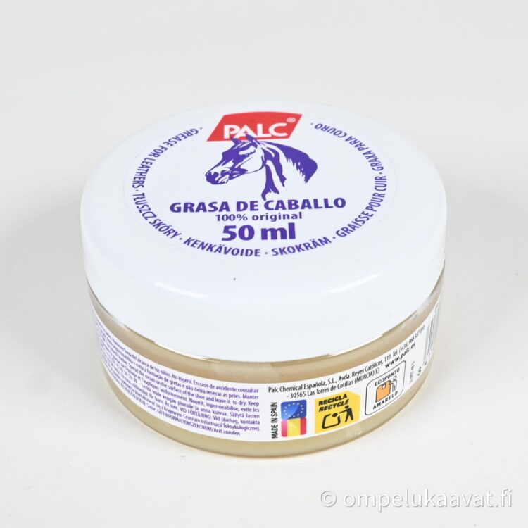 Etusivu / Tuotteet / Tarvikkeet / Nahkatyöt / Muut tarvikkeet nahkatöihin / Palc Grasa de Caballo kenkävoide 50 ml
