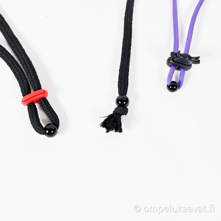 Sopii käytettäväksi erilaisten nauhojen kanssa esim. hupparinnarut, kengännauhat ym.