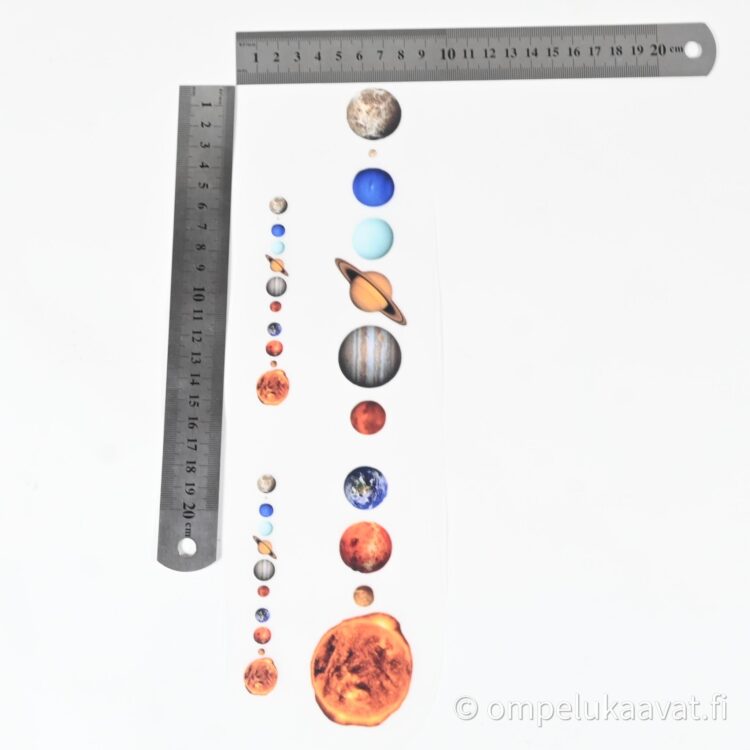 Arkilla on planeetta jonoja kolme. Iso jono on 29,5 x 4,5 cm. Pienemmät jonot on 9,8 x 1,5 cm