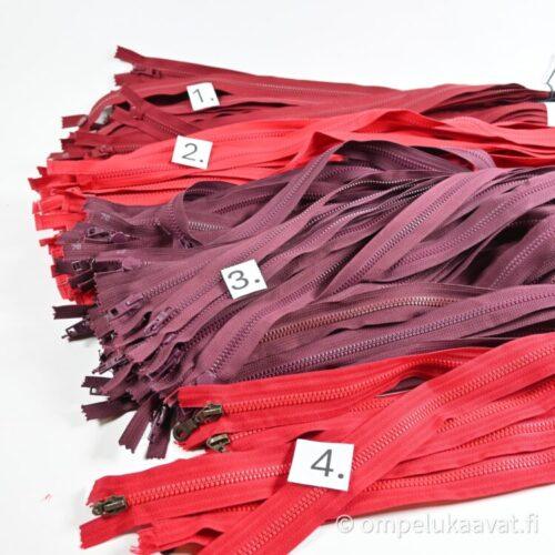 Etusivu / Tuotteet / Tarvikkeet / Vetoketjukauppa / Teollisuudenylijäämä vetoketjut / Teollisuudenylijäämä vetoketjut punainen, yksikelkkainen, muovihammas, avoketju 56- 69 cm