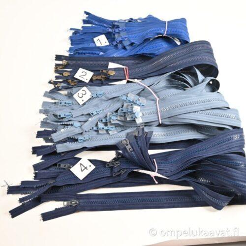 Etusivu / Tuotteet / Tarvikkeet / Vetoketjukauppa / Teollisuudenylijäämä vetoketjut / Teollisuudenylijäämä vetoketjut sininen, 2-kelkkainen, muovihammas, avoketju 36 -70 cm