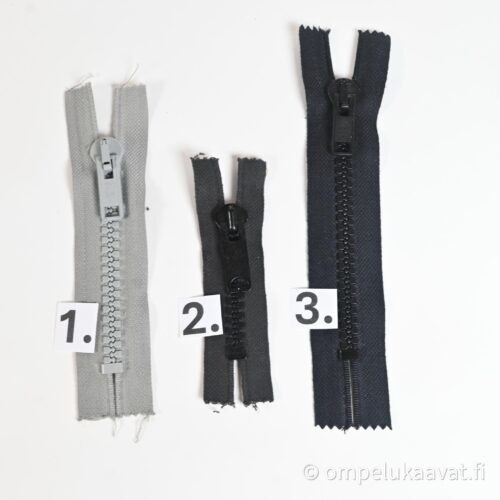 Etusivu / Tuotteet / Tarvikkeet / Vetoketjukauppa / Teollisuudenylijäämä vetoketjut / Teollisuudenylijäämä muovihammasvetoketjut, mustat ja harmaat 7 – 14 cm