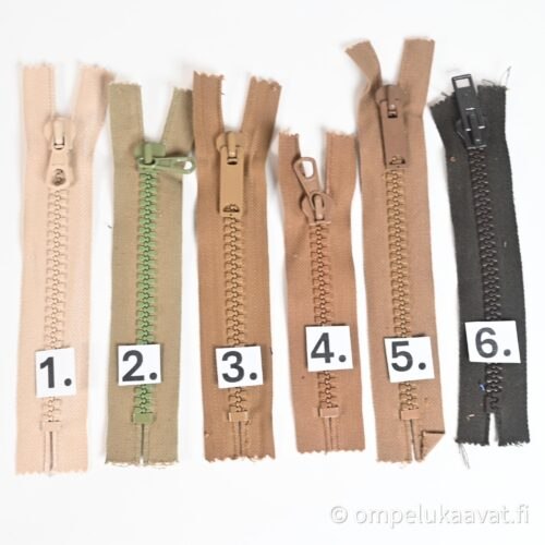 Etusivu / Tuotteet / Tarvikkeet / Vetoketjukauppa / Teollisuudenylijäämä vetoketjut / Teollisuudenylijäämä muovihammasvetoketjut ruskeat 12- 18 cm