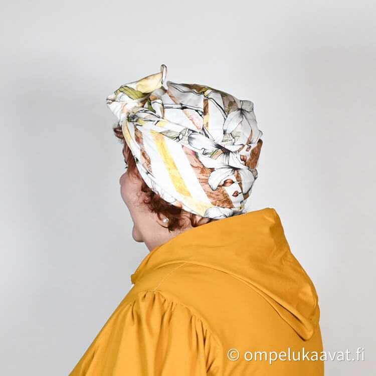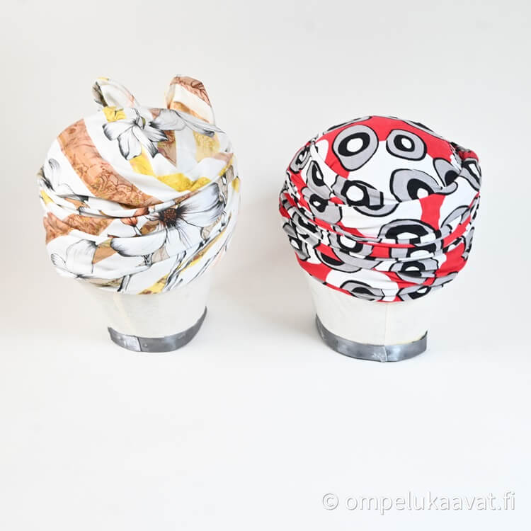 Tämän turbaanini voit tehdä joustamattomasta tai joustavasta kankaasta.