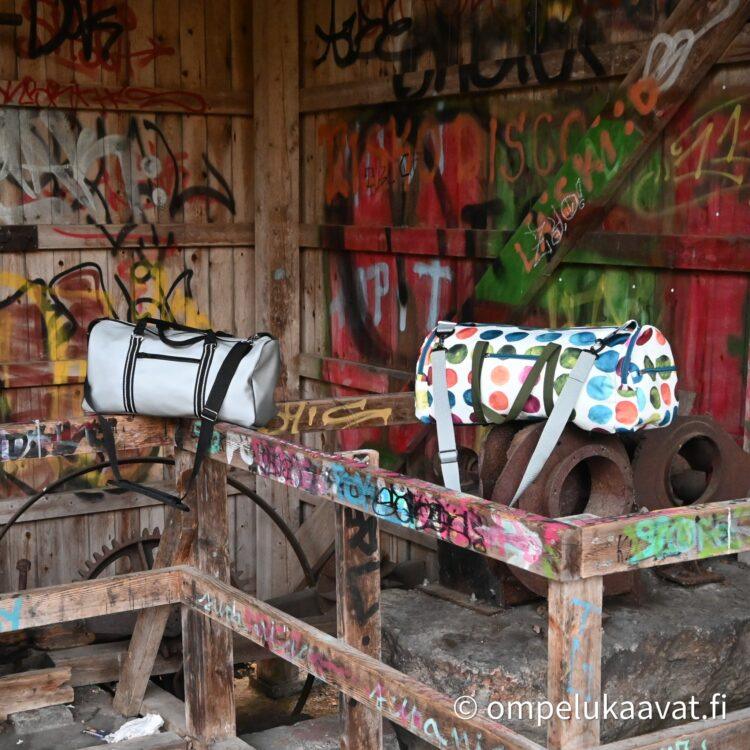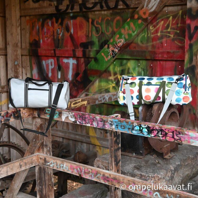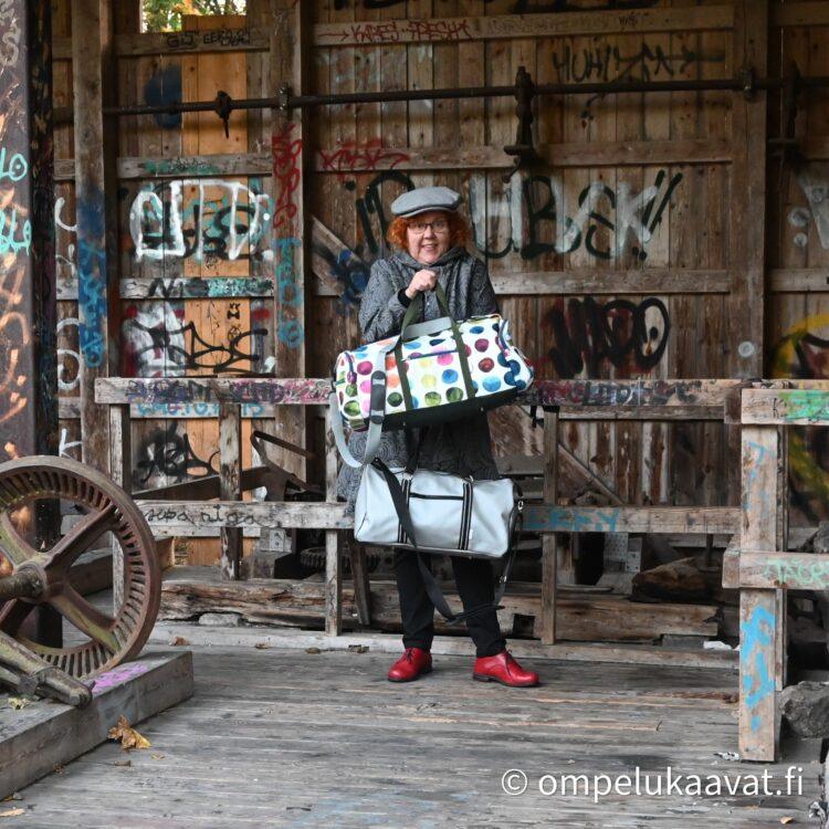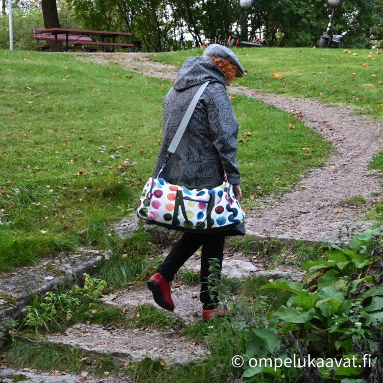 Laukkuun tarvitaan vain vähän kangasta ja siksi sen voi hyvin tehdä kierrätysmateriaaleista.